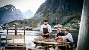 Salah lagi pengalaman unik adalah seri “Kitchen On The Edge” di Holmen Lofoten, di mana koki dari seluruh dunia datang untuk membuat hidangan berbasis bahan lokal selama beberapa hari.
